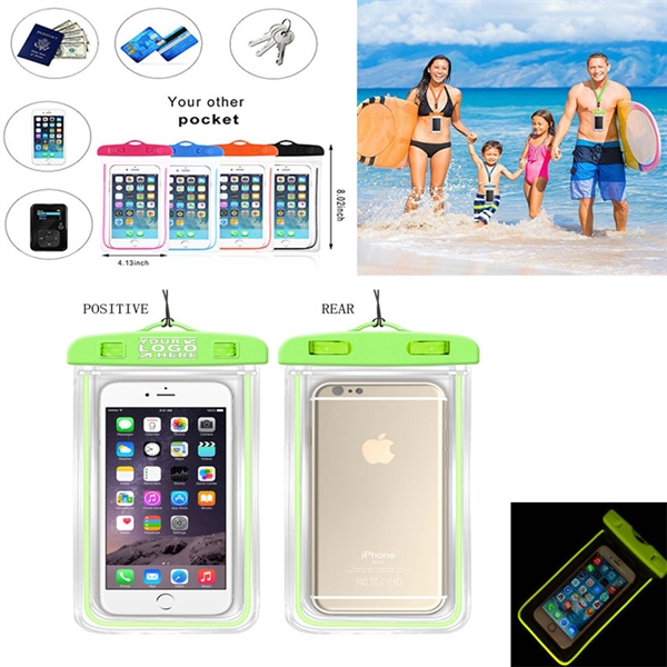 Description:This Luminous waterproof bag can give protections for your cellphones from water, dust, sand and snow while allowing you to use the normal functions of your phone. This functional favor has been tested to protect your phone in up to 10 meters of water. The crystal clear transparent windows side to side of the waterproof pouch are made of super thin 0.3mm material, it is sensitive to touch, response, type and take photos and videos.