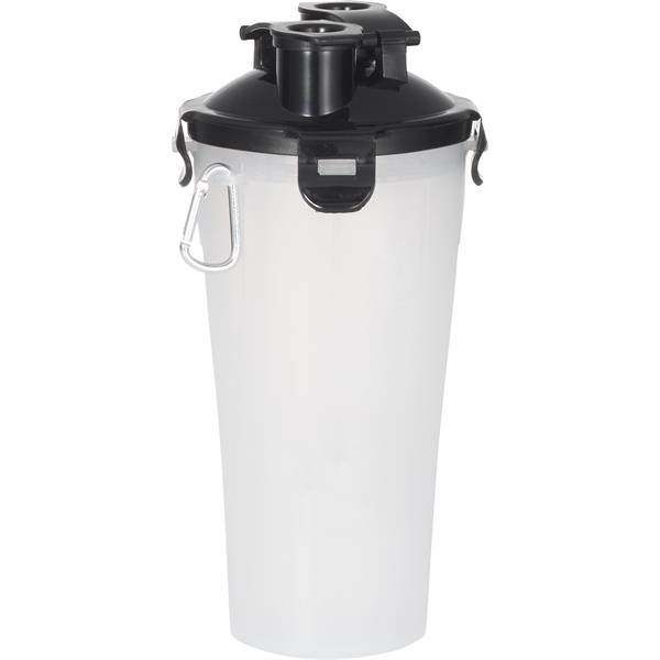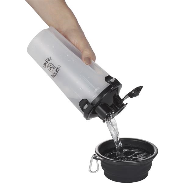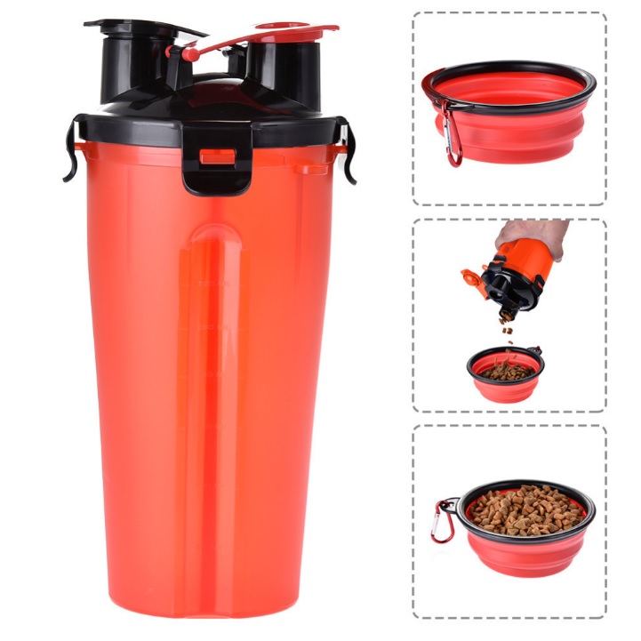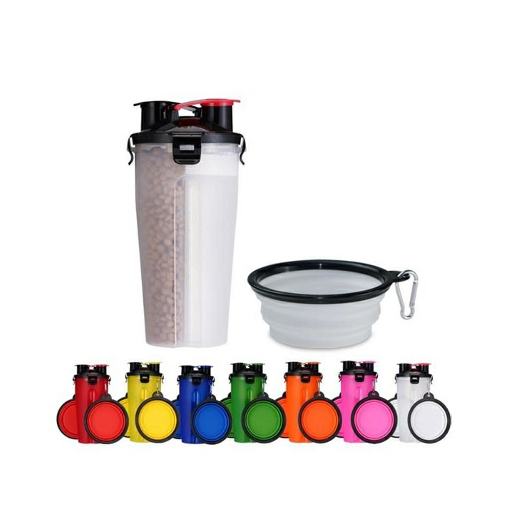Description:Make traveling with your pet a breeze with the Dual Sided Pet Food Container. The specialized locking lid that has two openings, one for each side of the container. Simply put your pet food on one side, water on the other, and you’re ready to go for the day! One collapsible silicone bowl is included. FDA Compliant. BPA Free.