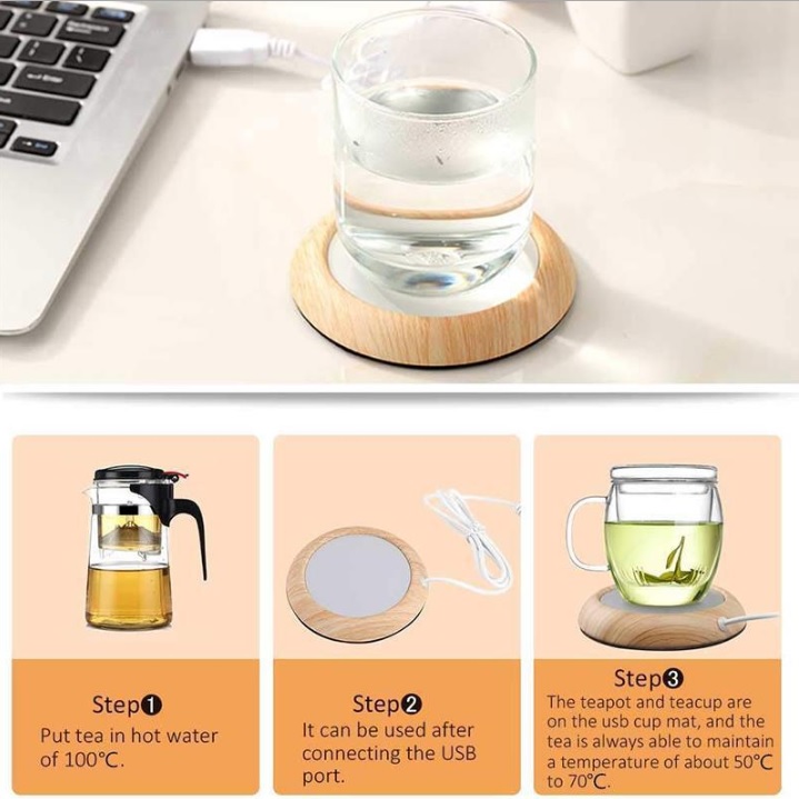 Description:The electric USB beverage warmer is made of iron & aluminum with felt bottom. It is a aluminum plate with wooden look iron around the edges. Plug it in to a USB outlet and it will start to keep your drinks warm.Great item for winter promotion! Imprint is available.