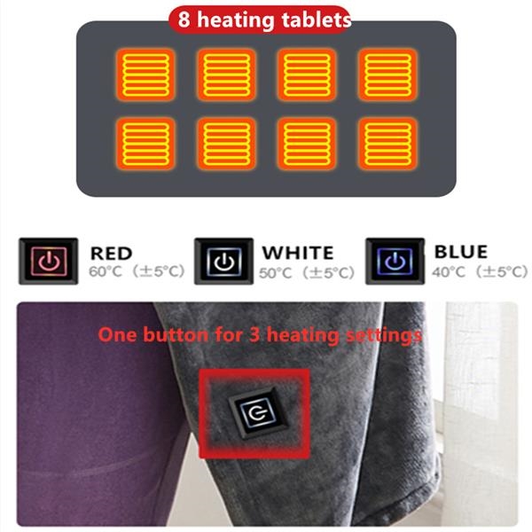Description:This electric shawl blanket is so warm that it is a good choice for office and home to keep warm in winter.It helps to warm the abdomen, shoulders and knees.The heated shawl is made of coral fleece fabric, warm, comfortable and super soft. Adopted electric black technology carbon fiber heating wire,the far infrared physiotherapy can keep warm and evenly distributed, accelerate fever, and do residential physiotherapy for people with waist, legs, shoulder and neck joints, etc.Temperature control in zone 3, according to the temperature demand, people with different body temperature can enjoy their own temperature.Selected coral velvet can be used on both sides, where it is cold to cover there.This heating shawl can be inserted into any USB port, which is very convenient.Please wash alone.