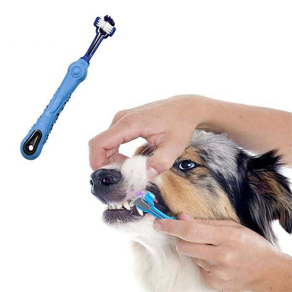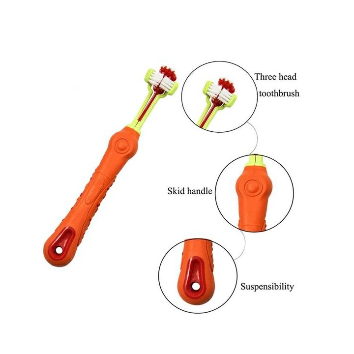 Description:This pet toothbrush handle made of rubber,Non-slip, comfortable to hold. Soft bristles, care for the teeth. Hanging hole design, can be hung, easy storage. Three-sided toothbrush design, no need to clean the pet teeth in all directions, effectively brush the dirt on pet teeth, keep the mouth clean and no bad breath. The toothbrush suitable for different teeth and mouth shape. Suitable for most pets dogs. Best dental care for dogs has an ergonomic design, making it easy to use, even when your pet is moving around. Also includes a tongue cleaner at the bottom of the handle.