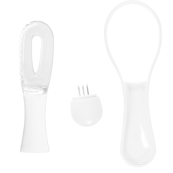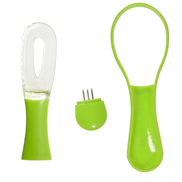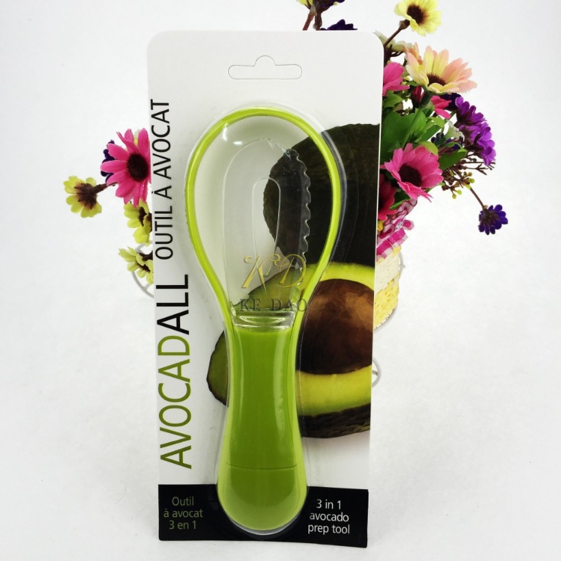 Description:This avocado prep tool measures 7-1/2 x 2-5/8 and includes a serrated blade for easy slices, pit separator and a large knife edge scooper. This imported item has a clear blade with solid colored handle and is top rack dishwasher safe. It’s also FDA-compliant and comes individually boxed. This avocado prep tool is a great giveaway for food demonstrations, trade shows and more! The perfect kitchen helper, it features a sleek style and modern design that fits all three components together in one package.Add your name and logo before distribution to extend your brand’s reach!