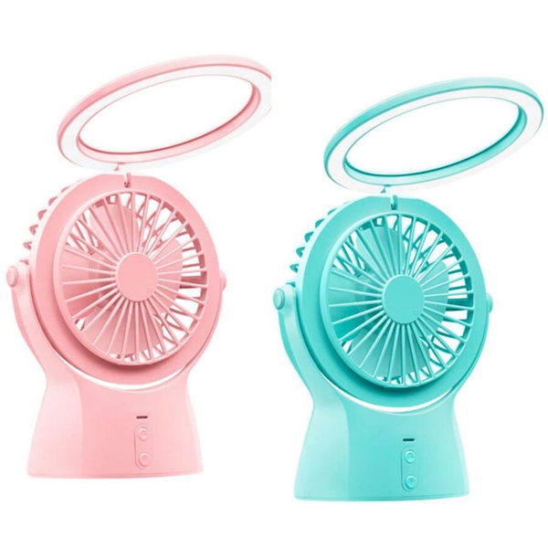 Description:Our desk mini fan is powered by 1800mah battery, also can be recharged by USB power source. This battery can last 3-12 hours. It equipped with a circle of LED light whose brightness and height can be adjustable. 3 modes of wind speed and 3 levels adjustable brightness, you can adjust it by pressing the power button repeatedly, perfect for indoor outdoor use, and night time reading. Available in several colors and can be customized with an logo.