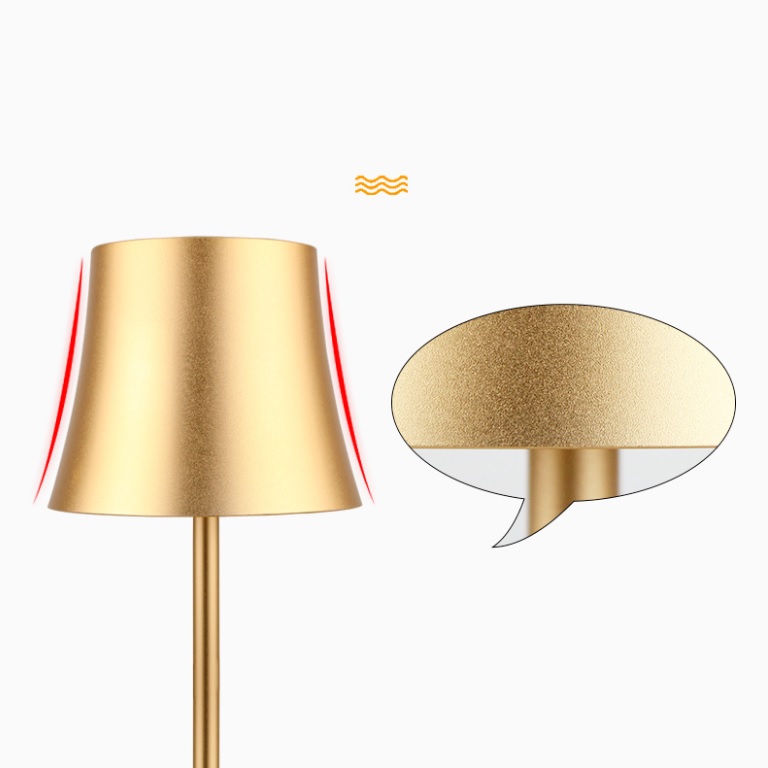 Description:This chic lamp is avaliable in three colors: black and gold. Easy to install in various environments, very suitable for bedroom, living room, outdoor area, office, garden, children’s room, dressing table, bedroom, bar or study etc.With the built-in large capacity 5200 mAh rechargeable battery, this stylish table lamp can be used wirelessly, which is convenient and safe to carry anywhere, allows up to 24 hours usage even at brightest level. Equiped with a 120cm long charging cable, it can be connected with all universal USB charging ports. IP54 waterproof and dust proof, very safe to use outdoors. Touch switch, 2-level brightness 3000k and 4500k, just need one touch to adjust. Your logo is welcome. Welcome to inquiry.