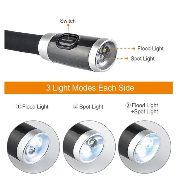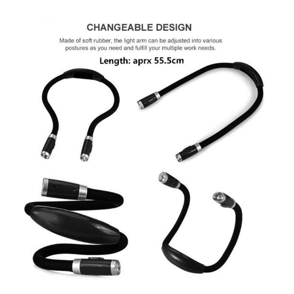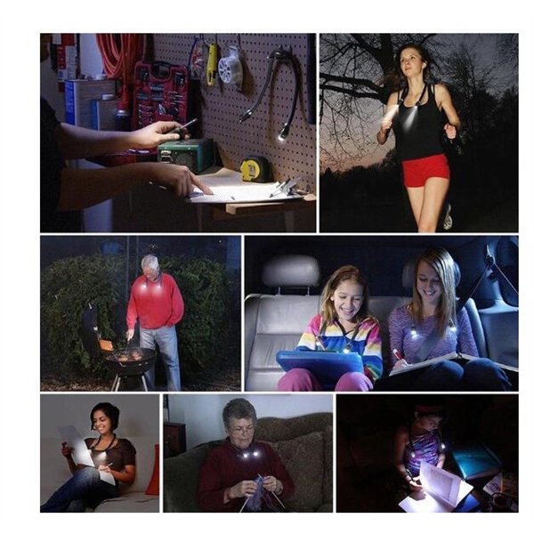 Description:With special hands-free design, this unique neck light is much more helpful to operate, which will bring you extraordinary lighting experience. With inbuilt lithium battery, one charge for worry-free use, enjoy more lasting and stable light.Besides, it is perfectly suitable for reading, night jogging and mending. Capable to serve as spotlight and floodlight, meets your different lighting needs.Bendable and strong, allow you to choose the best lighting angle in different environment, simple and easy to create the perfect brightness for yourself. Wear it around your neck to free your hands, extremely convenient and practical.Perfectly suitable for indoor or outdoor, such as reading.
