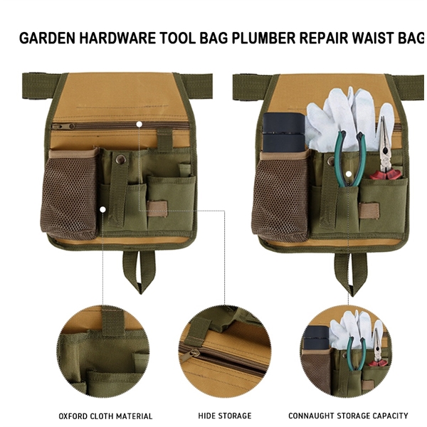Description:Our multi-pocket-This bag comes with a large zip pocket and 5 other pouches to accommodate a variety of hand-held tools. Durable + Tough-Designed from high-quality, tear-resistant Oxford cloth material to provide lifetime protection.Adjustable waistband-fully adjustable to fit all body types, suitable for both men and women Easy-to-use buckles make it easy to load and unload bags.There is also a ring on the bottom of the bag, which is suitable for carrying a hammer. Enough space to safely and reliably store 5-10 hand tools depending on size.Welcome to inquiry.
