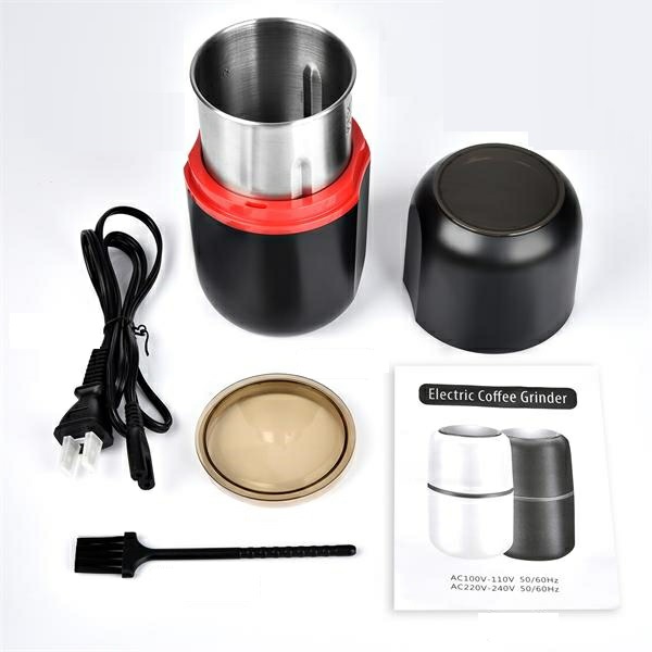 Description:This inner tank of the grinder is made of 304 stainless steel. The blade is made of high-quality stainless steel, which is quite durable; Unique shape of the blade allows grinding in all 360-degree directions.Equipped with 150w copper motor, strong power and low energy consumption, 304 stainless steel two-way structure blade, 360 Degree all-round three-dimensional grinding, no dead corners to crush food. Not only coffee beans, it is also suitable for dry solid ingredients such as spices, nuts, grains, peppers, almonds, etc.Welcome to customize your brand logo.