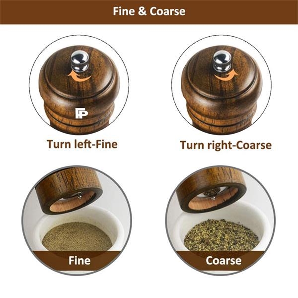 Description:Adjustable ceramic grinding core allows you to grind manually the seasoning from fine to coarse for your preference.perfect for all types of salts and peppercorns. Adjust the seasoning from fine to coarse by twisting the rotary knob on top.Unscrew and remove top nut, pour in peppercorns or sea salt and turn the top clockwise, Turn top nut to adjust from fine to coarse. For a fine grind, turn the nut clockwise. For a coarser grind, turn the nut counterclockwise. Use for peppercorn, sea salt, black pepper and more seasonings for camping, picnic, barbecue night and daily cooking,As a kitchen or table furnishing, it adds the joy to your life.Imprint your exclusive logo, everyone who uses it will know your company name. Welcome to inquiry.