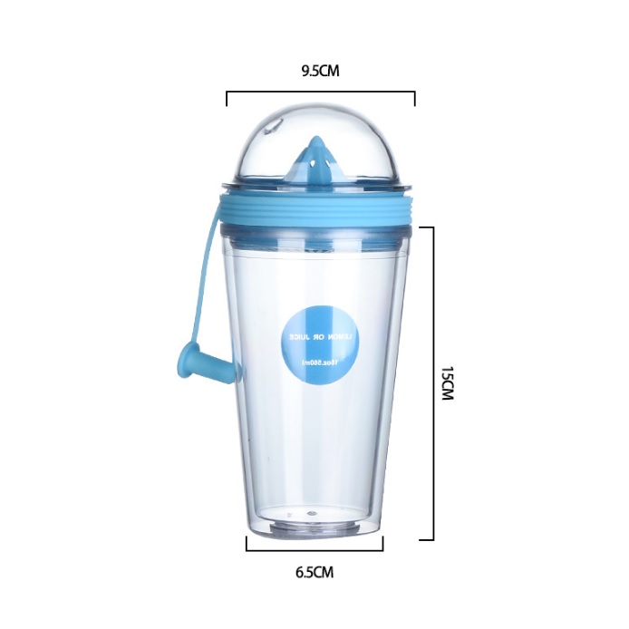 Description:This 16oz liquid capacity double wall acrylic plastic tumbler features a citrus juicer to make your beverage sweeter and healthier. The tumbler allows you to squeeze all the juice from your favorite citrus fruit and includes a straw. BPA Free. Hand Wash Only.You can customize your company logo! Welcome to inquiry.