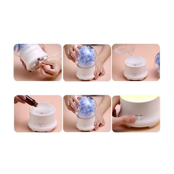 Description:This aromatherapy machine consists of immortal flowers and a white base, without chemical fillings, the house won’t smell! Its colorful, fresh anti-corrosion fresh flowers, coupled with white diffuser, can be easily decorated desktop, calm coffee table central decoration or fresh side table night lights. This design is perfect for spring farm and country valentine’s day decorations! Our diffuser can improve the air quality of the large room or bedroom you breathe. It can reach about 50 square feet with atomization times as low as seven hours. In addition, it also has automatic shutdown function. Our diffuser has discoloration and soft white LED lights. Use a color-changing light during a yoga workout, then use its soft white color to relax!