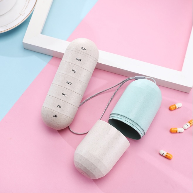 Description:Made of natural grain fiber which is healthy and eco-friendly, large capacity pill organizer can hold up to 7 fish oils or 14 vitamins in each compartments. Double waterproof and moisture-proof, one more case with sealing is added to hold and prevent the pill organizer from water or moisture to store your pills in dry condition. Swirling open design is convenient for elders or children,a cord attached on the pill case makes it portable for hand-held or you can fit in your pocket or purse for easy and urgent fetching. Custom logo is available.Welcome to inquiry.