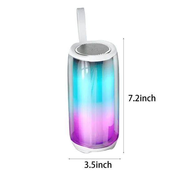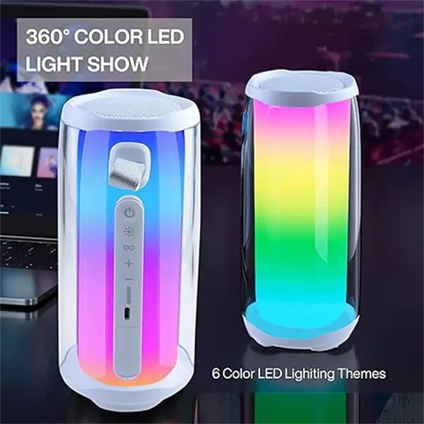 Description:With its compact size, this wireless speaker is your perfect travel companion. Its streamlined design allows for easy handholding wherever your adventure takes you! Our bluetooth speaker offers seamless connectivity, allowing you to play your favorite music from any device! Take your speaker to the pool, on trips, hikes, camping and more!A dazzling 360 degree light spectacle that transforms your surroundings. Customize your ambiance different color themes, all pulsing in sync with your music’s rhythm. Choose from a variety of colors light show and modes to set the perfect ambiance for any occasion.This bluetooth speaker can play music from TF memory card, USB drive , bluetooth with your cell phone, laptop or even has Aux input that you can connect to your other music source