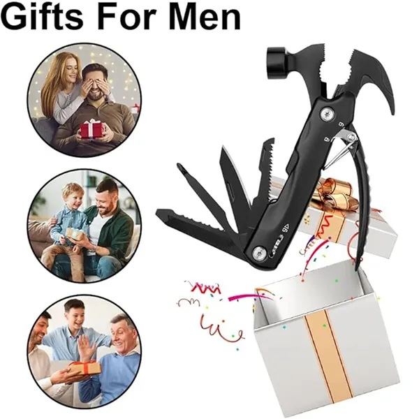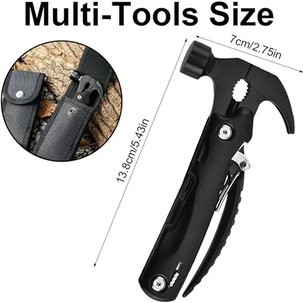 Description:Crafted from ultra-durable stainless steel, this 12-in-1 multitool is corrosion-resistant and designed for long-lasting use. It includes essential tools like a hammer, wire cutter, pliers, nail puller, survival knife, and more, all accessible through well-designed openings for easy use. The multitool folds compactly into a grip, fits comfortably in your pocket, and includes a belt clip pouch for easy carrying, making it ideal for camping, hiking, DIY, and emergencies. Its lightweight design at 2.75 *5.43 inches and 0.53 makes it perfect for on-the-go. This versatile tool is an excellent gift for men and women on special occasions like Christmas, Father’s Day, or anniversaries.