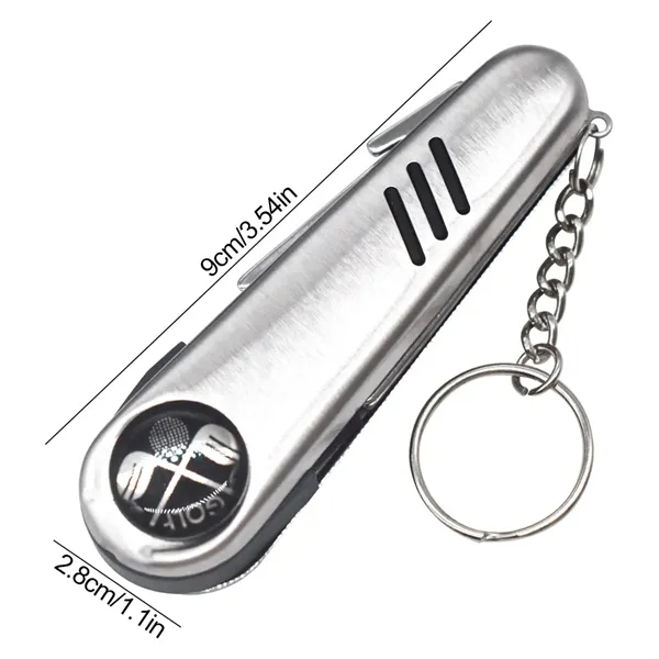Description:stainless steel.Golf divot tool, includes key chain ring onto your belt, pant or golf bag hook.Golf club groove sharpener, perfect and recommended for men women and all golf players and fans.Golf ball alignment marking tool, the compact golf club cleaning tool is easy to pack into your golf bag or carry in your pocket when you hit the links.Golf club brush groove cleaner, multi purpose tool keeps your clubs and equipment clean and at all the time.Golf club brush, perfect and recommended for men women and all players and fans.