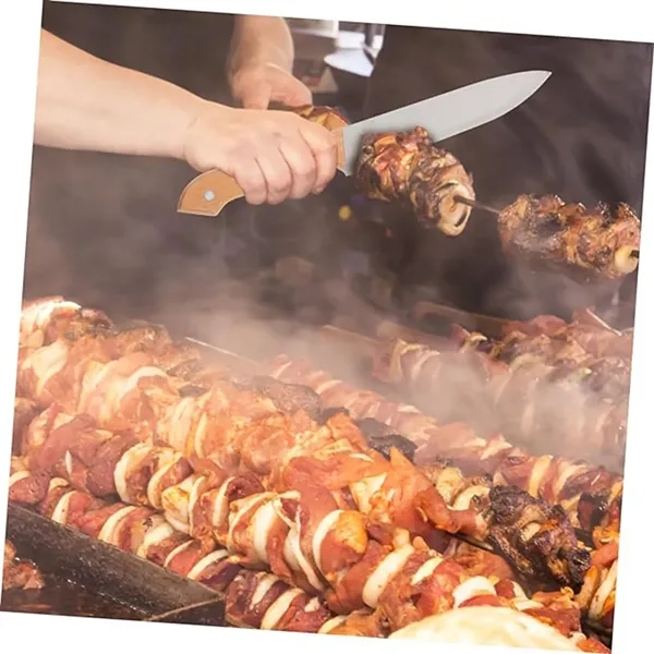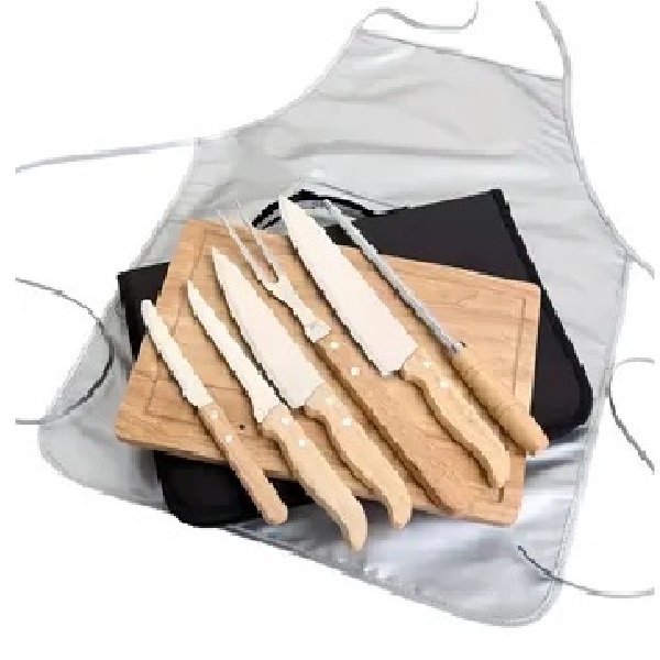 Description:Enjoy the perfect grilling session with this BBQ set that includes 4 different knives, 1 food tong, 1 sharpening stick, 1 cutting board, and 1 apron. Crafted from high-quality stainless steel, the tools are rust-resistant, durable, and easy to clean. The improved wooden handle design ensures comfort and protects your hands from burns. Suitable for use with gas, charcoal, infrared, electric, and propane grills, this lightweight and portable set makes an excellent gift for any barbecue enthusiast. Ideal for birthdays, weddings, Father’s Day, and more. Custom logo options available!