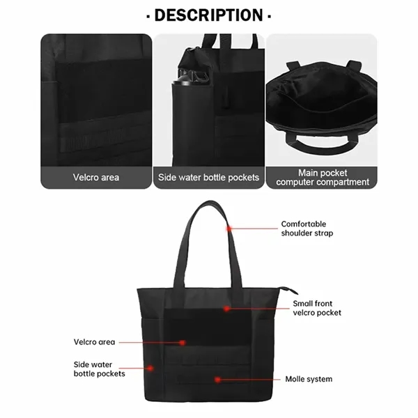 Description:Introducing our Oxford Cloth Outdoor Bag, a stylish and functional unisex black tote designed for all your adventures. Crafted from durable Oxford cloth, this tote is both water-resistant and lightweight, making it perfect for outdoor activities, shopping, or daily use. The spacious interior offers ample room for your essentials, while the secure zip closure keeps everything safe.Featuring sturdy, comfortable handles, this tote ensures easy carrying whether you’re on a hike, at the beach, or running errands. Its sleek black design adds a touch of sophistication, making it a versatile accessory that complements any outfit. With its combination of style and practicality, this Oxford Cloth Outdoor Bag is the ideal companion for anyone seeking reliability and fashion on the go!