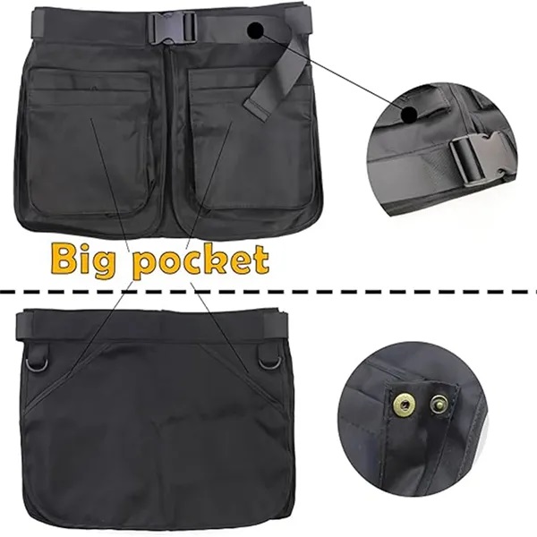 Description:Made of polyester fabric, lightweight and sturdy, with a large capacity.It has multiple pockets, including a large main pocket that can hold a variety of tools, such as garden shovels, rakes, and other gardening tools. The belt apron bag also has other two big pocket for storing items such as tools, cell phones, keys, or wallets to keep them organized and easily accessible.The waist belt apron bag is designed with adjustable straps, making it comfortable to wear and take off, suitable for men and women of different sizes. 31.5-45.3/80 cm-112 cm.The waist belt apron bag is suitable for various occasions, such as gardening, yard work, motorcycle riding, hiking, camping, fishing, hunting and other outdoor activities. It can also be used as a tool bag or storage bag.