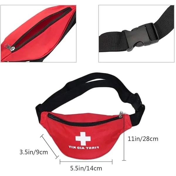 Description:This red adjustable first aid fanny pack measures 11*5.5*3.5 inches (28*14*9 cm) and is crafted with high-quality material, featuring sturdy stitching and seams. It’s lightweight and convenient for outdoor activities like running, walking, and hiking, making it ideal for unexpected emergencies. Widely used in cars, drugstores, supermarkets, and by insurance companies, it’s a reliable companion for providing timely first aid. Please note, this is an empty bag with a first aid print; additional contents must be purchased separately.