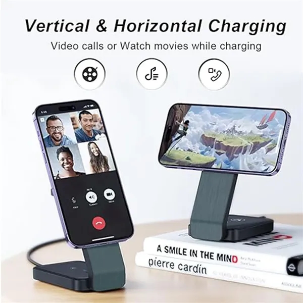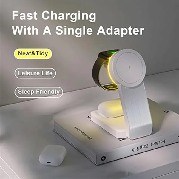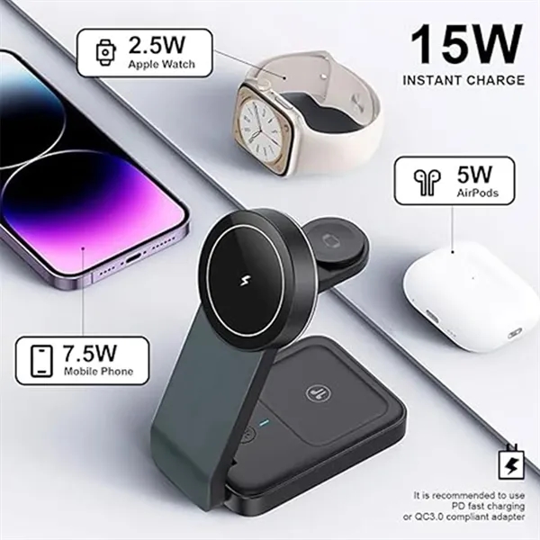 Description:Experience fast, reliable charging with this Qi2-certified 3-in-1 MagSafe charger stand. Delivering up to 15W for MagSafe iPhones with CryoBoost technology, it keeps your phone cool while cAharging at peak speed. Power your iPhone, Apple Watch, and AirPods simultaneously, simplifying your daily routine and keeping your desk clutter-free. The stand is compatible with iPhone 16/15/14/13/12 series, AirPods Pro/3/2, and all Apple Watch models, including the Ultra and SE. Featuring a certified Apple Watch charger unaffected by watchOS updates and a portable USB-C magnetic charger, it ensures safe and seamless charging wherever you go.