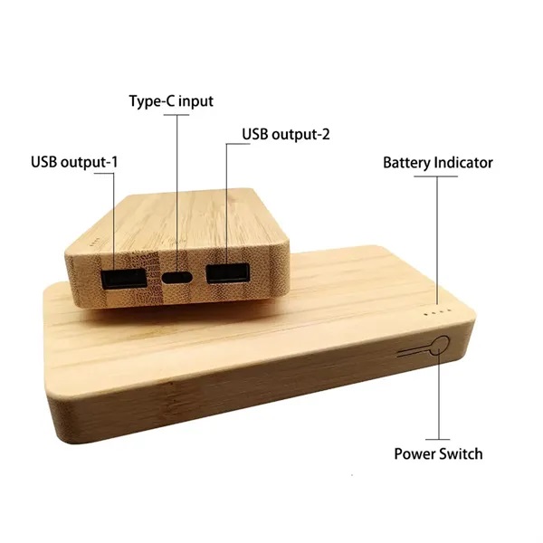 Description:Introducing our unique bamboo and wooden wireless charging power bank with an 8000mAh capacity and 5W wireless charging function. This eco-friendly charger, crafted from natural bamboo and wood, offers a stylish and practical solution for your mobile charging needs. Need more power? We also offer a customizable 10000mAh version. Charge your devices with ease and elegance while embracing sustainability.