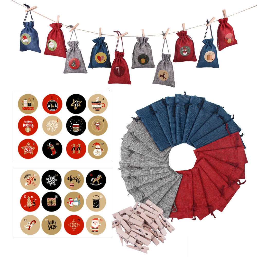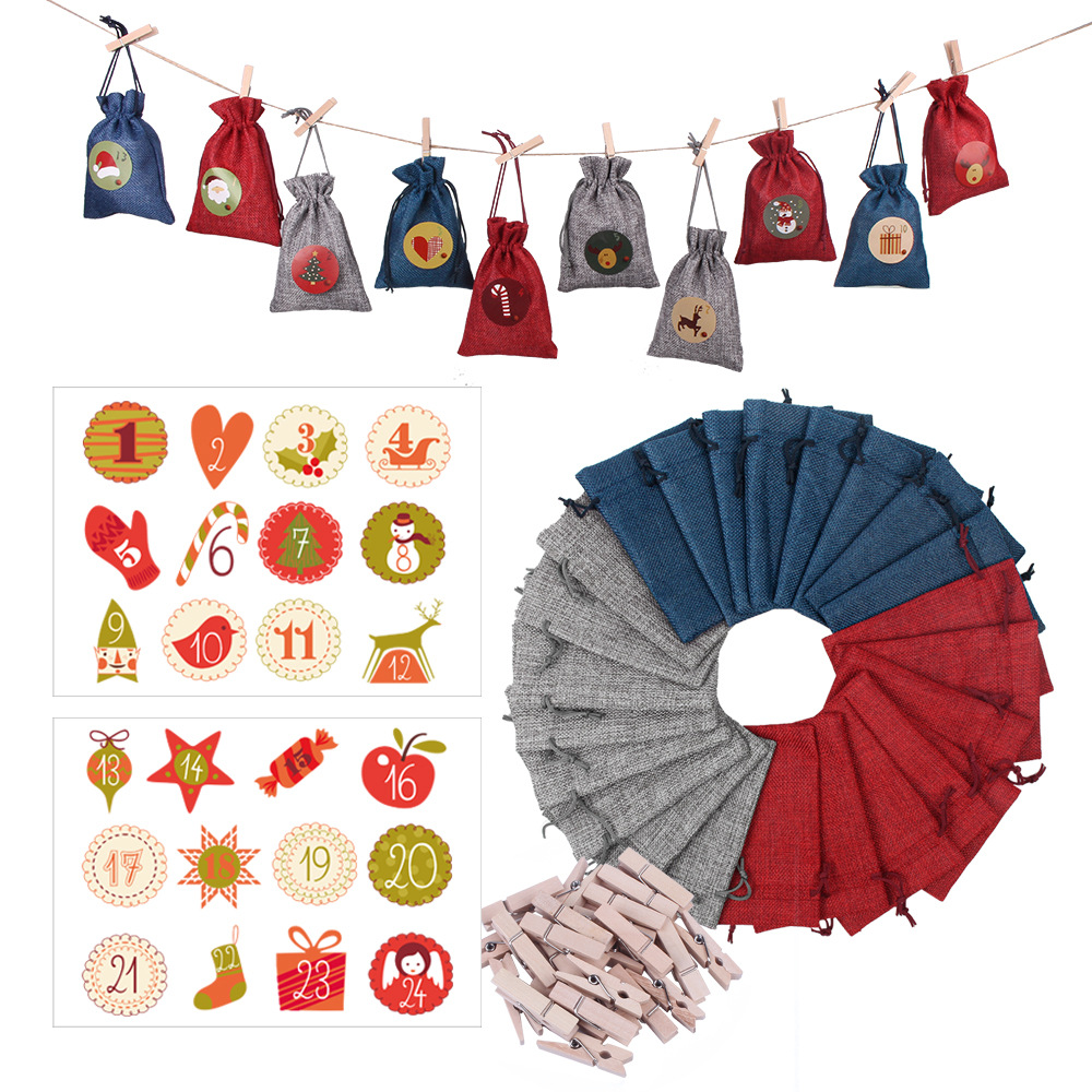 Description:This Christmas set consists of 24 cloth bags, 24 clips, 24 stickers and a 10 meter long twine. The bags are made of cloth, soft and breathable, and come in three colors: wine red, gray and navy blue. 3 sets of different adhesive style, with a small clip and hemp rope, can make you more convenient when decorating, convenient, for the festival to add a happy atmosphere. This item can be used as a holiday decoration, but also as a gift to others, the specific details can consult us.