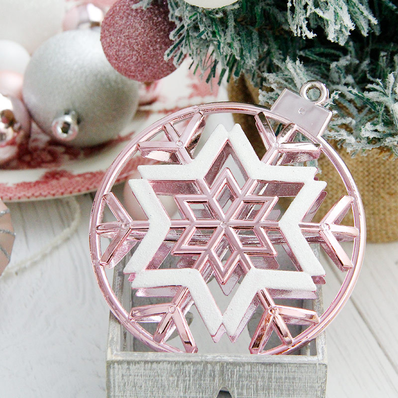 Description:This Christmas snow is made of plastic material, circular shape, with snowflake shape inside, hollow design, more image. The circular outer ring has a small mounting hole for convenient suspension. Multi-color optional, can be suspended on the Christmas tree, can also be suspended in the living room, doors and Windows and other positions, so that the festive atmosphere more strong.