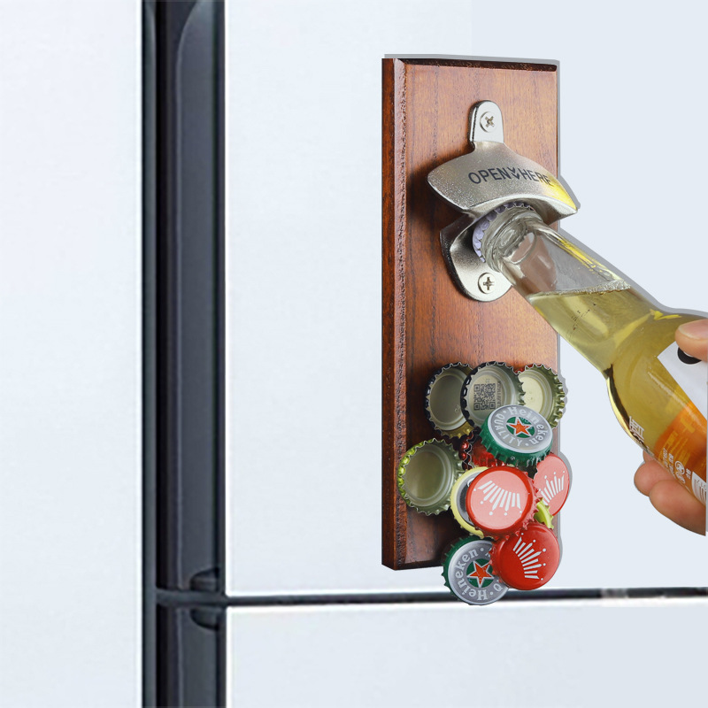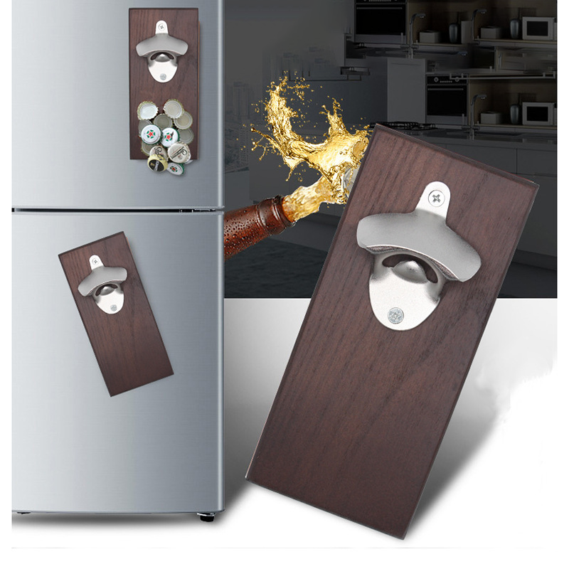 Description:This bottle opener adopts zinc alloy and solid wood as raw materials, zinc alloy is wear-resistant, scratch resistant and durable. With hooks or magnets on the back, it can be hung and magnetically attached to the refrigerator. The operation is simple, just put the beer bottle cap in the middle of the bite and the force point, and gently press down to open the bottle.