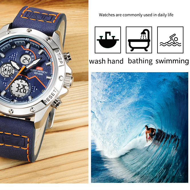Description:This wristband is made of genuine leather, which is soft, breathable, comfortable and of high quality. The buckle is made of stainless steel, and the case is made of alloy. The overall wear resistance and corrosion resistance are durable. The 1.8-inch screen features night-light, an alarm clock, a chronograph, a calendar, and 24-hour day and month displays. Waterproof function, whether swimming fitness or daily washing, can be used.