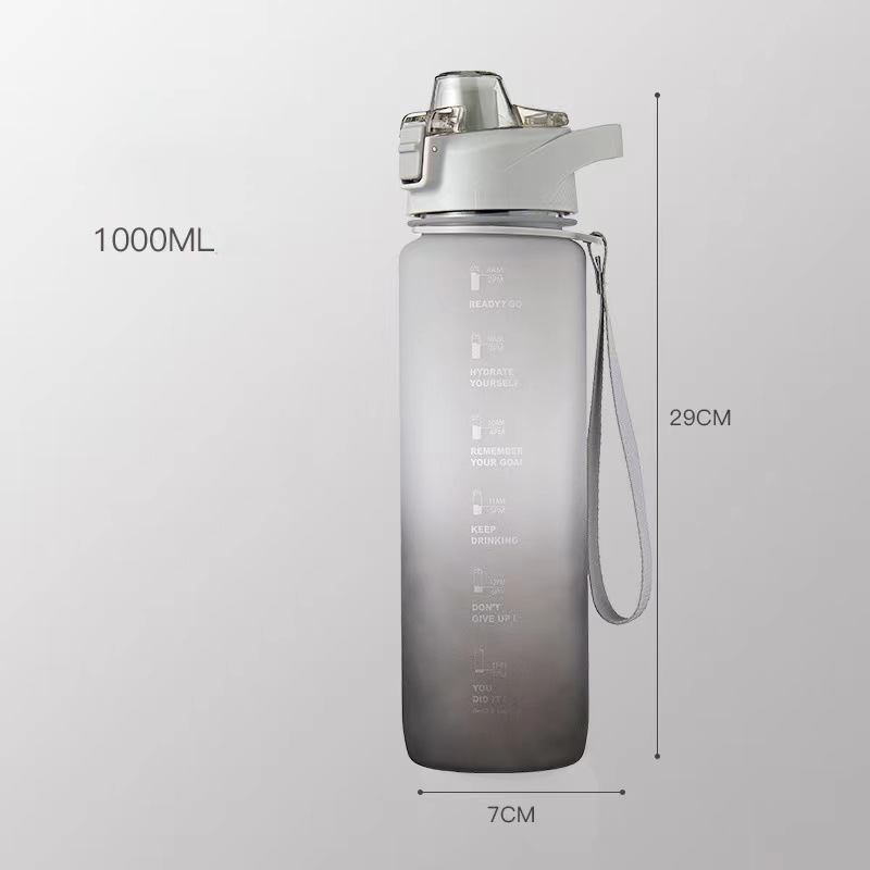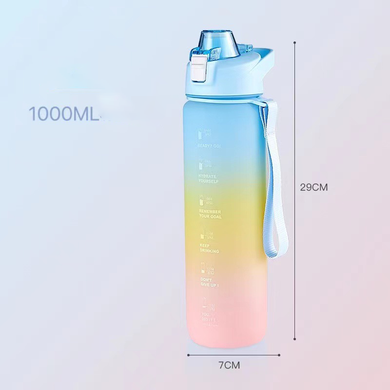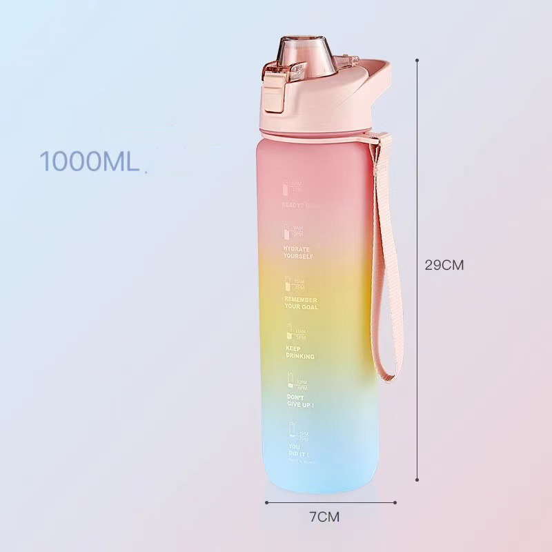 Description:This sports cup is made of environmentally friendly plastic material, which is safe, healthy and resistant to falling. 1000ml large capacity cup body, straight drink cup mouth, 180° open water without touching nose. The cup body adopts gradual color matching, with accurate calibration, scientific drinking water. Round cup mouth, smooth without cutting mouth. 360-degree leakproof seal with portable rope. This section multicolor optional, you can also print the logo you want, specific details can consult us.