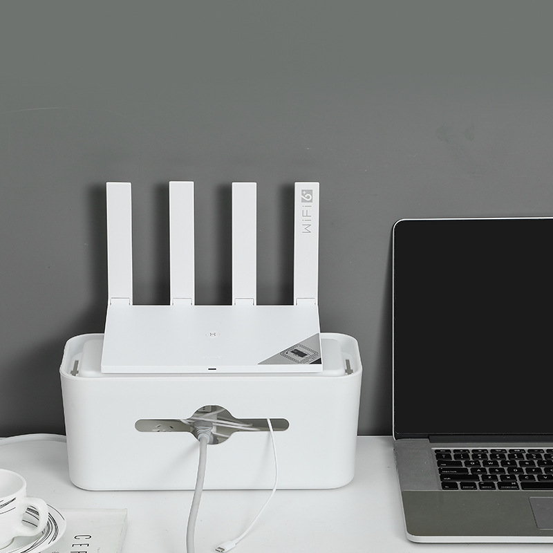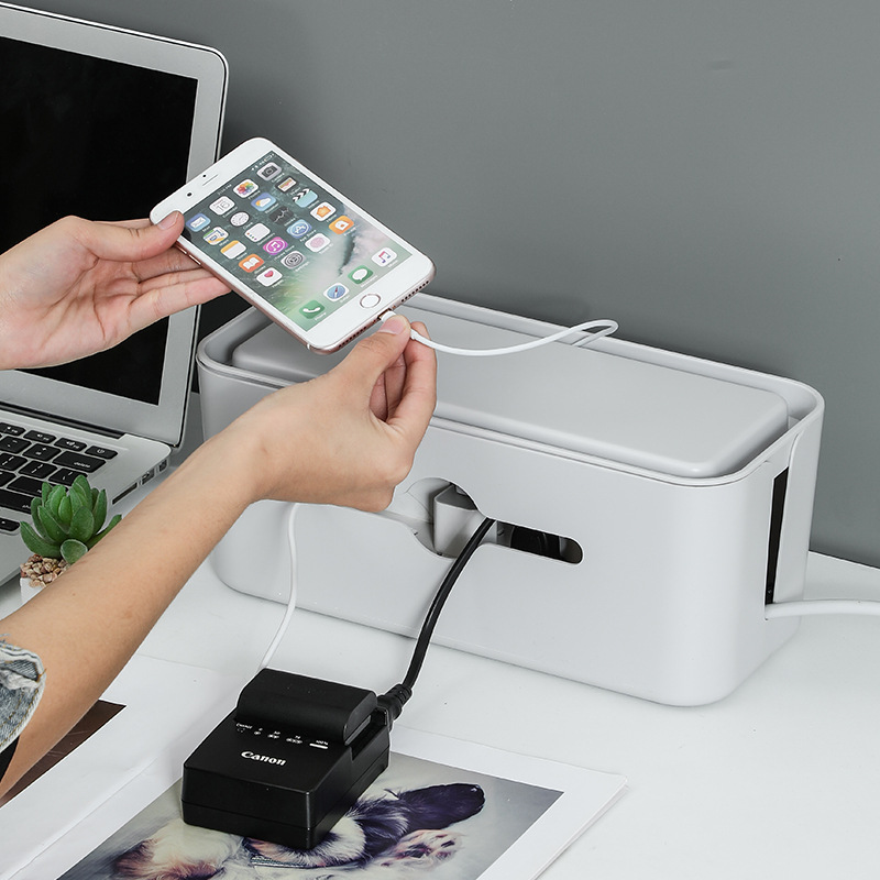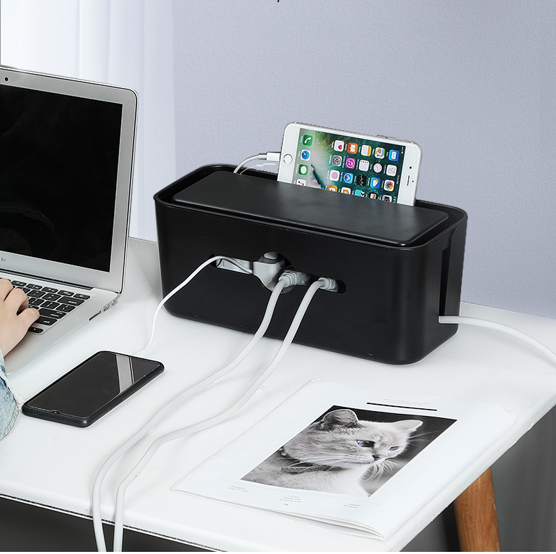 Description:The top of this storage box has its own groove, which can hold things and watch TV shows on your mobile phone. Large capacity design, the upper layer can be placed mobile phone, router, etc., the lower layer can be placed plug bar. Humanized design, top reserved line hole. Wall-mounted, saving desktop space. Large opening on the front for easy storage of wires. Double head design on both sides of the box body, easy to enter and exit the power line. Hollow design at the bottom, wave heat dissipation holes at the bottom of the box evenly distributed, rapid heat dissipation.