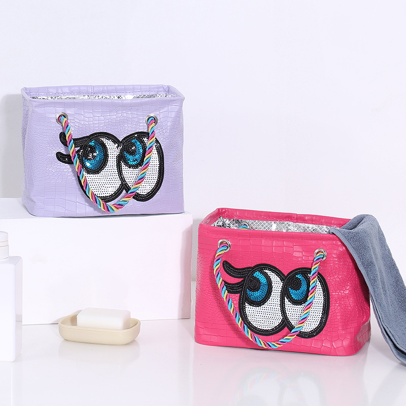 Description:High quality PU fabric: classic crocodile high density PU fabric, excellent waterproof performance, abrasion resistance and scratch resistance. Reinforced woven hand: with high quality woven hand, it is comfortable and durable. Fashion sequin pattern: delicate sequin pattern, simple fashion. Widen bottom: widen bottom super capacity, neat and tidy. Suitable for many occasions, bathroom, outdoor, tourism, hot spring, home and so on. The two colors are optional, you can also print the logo you want, specific details can consult us.