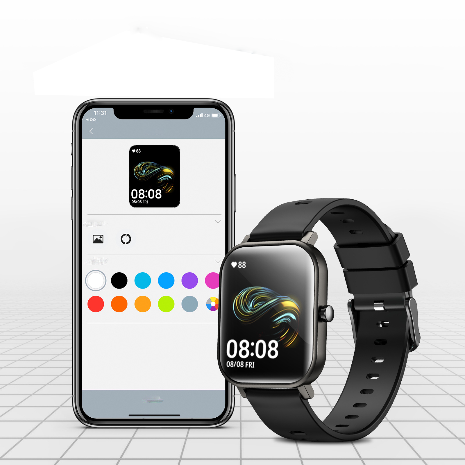 Description:1.69-inch IPS HD color screen with clearer full field of view. 24-hour comprehensive health monitoring, exercise, heart rate, blood pressure, blood oxygen real-time automatic detection. Massive custom dial at will switch, create exclusive dial, fashion versatile. 24 kinds of sports mode, intelligent choice, sports more professional. 10 days long battery life, 15 days long standby, dynamic power. Shaking can take bluetooth photos, anytime, anywhere to record the good time. Real-time call information synchronization, timely reminder, clear presentation. IPX67 waterproof, 1m water depth can soak for 30 minutes, without fear of wind and rain, rest assured to wear. Support Android 4.4 and IOS9.0 or above smartphone devices, widely compatible with alarm clock stopwatch Settings, music playing, mobile phone search and other functions to make life more efficient.
