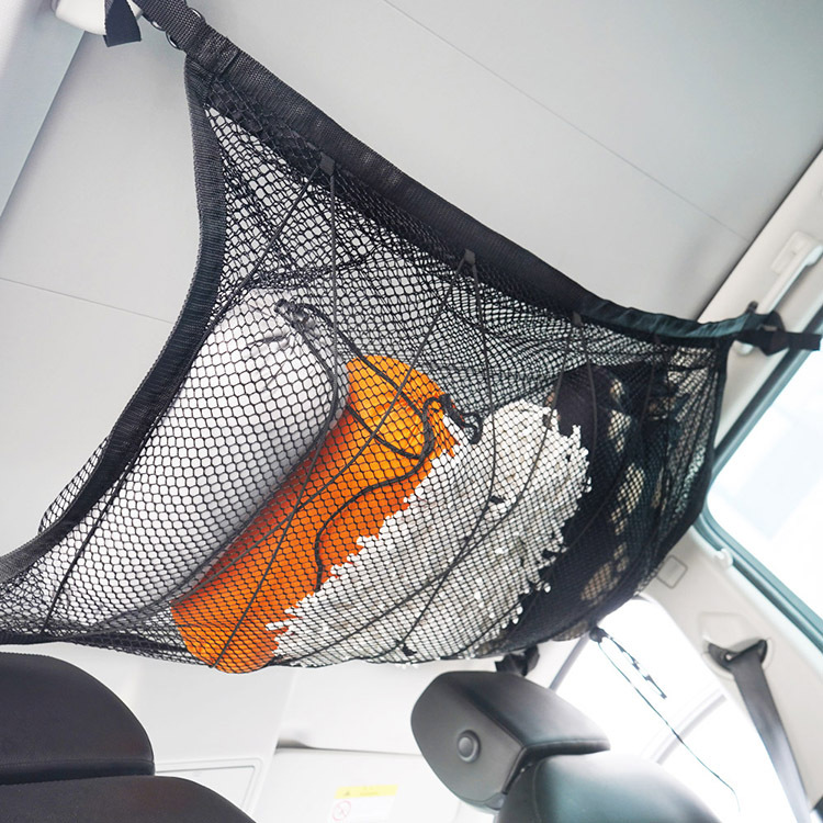 Description:This section adopts net with pull rope to strengthen load bearing.  Through the strap, buckle, fixed on the four handles in the car.  Suitable for most models, can hold a variety of items.  Daily travel storage and carry is very convenient, saving the space in the car.