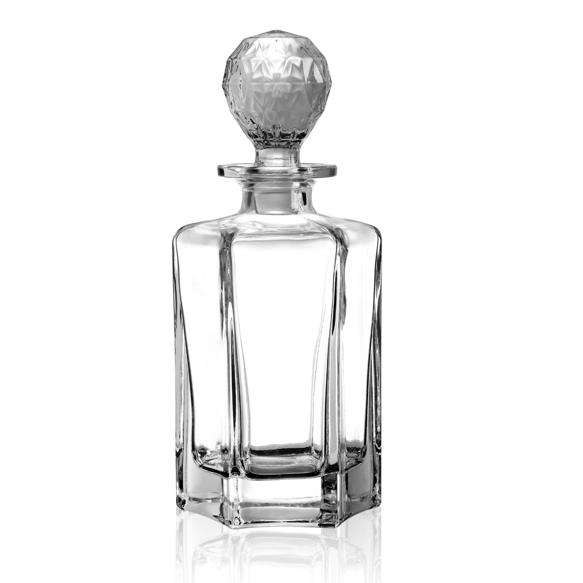 Description:This product is made of glass with a capacity of 780ML.Whisky decanter is being grinded precisely against the stopper,for a fine finish.Experienced handicraftsman is concentrating on carving the patterns of the mixing glass.Oxygen output from all directions gives the proper fire polishing to our products.Advanced automatical machines ensure our galssware meet the strict standards of quality control.Meticulous claening brings our glassware the excellent transparency and clearness.
