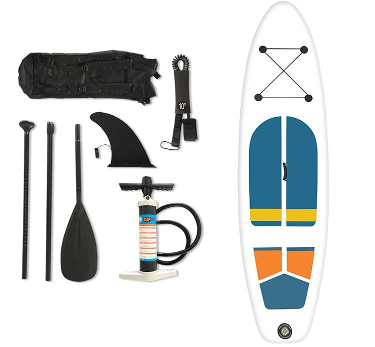 Description:The surfboard is made of anti-seismic glued wire drawing and PVC structure. The upper surface is made of 0.9 anti-slip EVA pad, the outer layer is 0.04PVC material, the inner layer is 0.04PVC material, the inner layer is made of wire drawing material, and both sides of the inner and outer layer are made of PVC sealing strips.At the same time with safety rope design, can load personal items, not easy to slip.EVA non-slip mat, safety handle to improve non-slip performance.Plug-in fin, safe and convenient, plug and play, improve the gliding speed, keep the balance of the surfboard, board hole tail single-hole inflatable valve design, with the pump and deflate more convenient.Safety foot rope design, one fixed paddle board, one fixed shank, to protect personal safety.Suitable for people below 130KG, suitable for water yoga, racing and travel, etc. At the same time, you can also customize the style you want, the specific details can consult us.