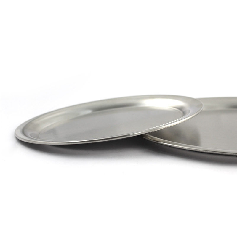 Description:This type adopts food grade 304 stainless steel, safety and environmental protection.The plate is thickened and deepened, strong and durable.Disk bright wire drawing texture, double process.Surface electrolysis treatment, fashion and durable, environmental protection and safety.Corrosion resistance, oxidation resistance, acid and heat resistance.This style is circular design, you can also print the logo you want, other shapes can also be customized, specific details can consult us.