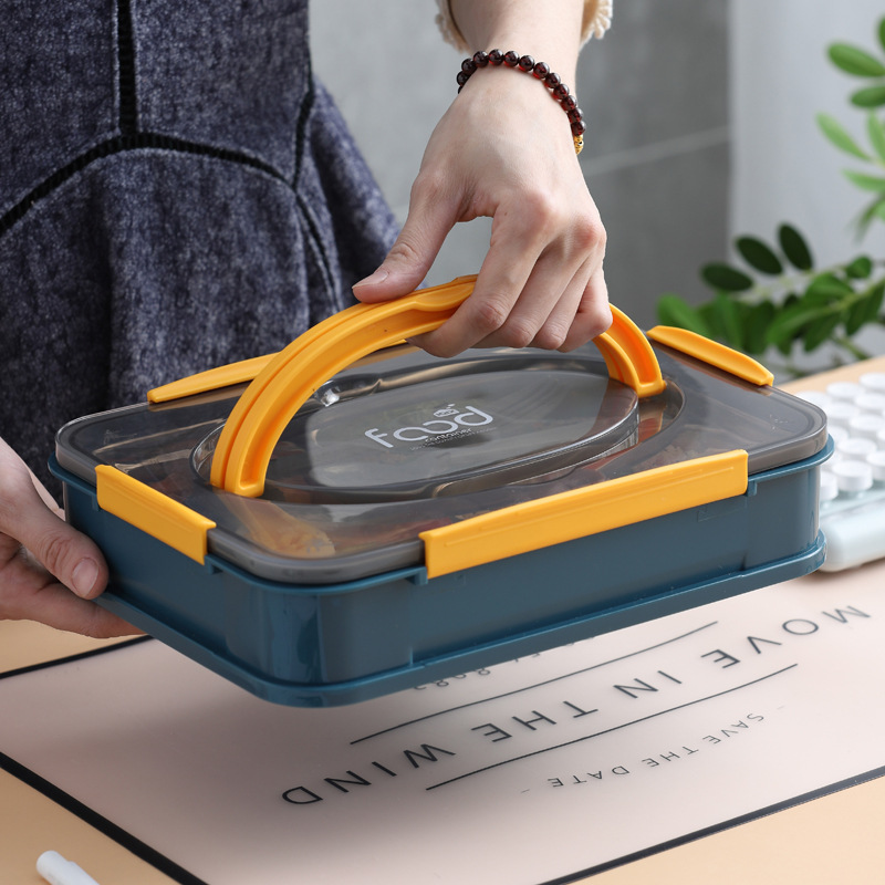 Description:This bento box adopts stainless steel plate compartment design, built-in integrated sealing apron, sealing does not leak, it is more convenient to carry out.Equipped with fork and spoon, the material is smooth and comfortable to hold.Lunch box with portable design, more convenient to extract and move.3 colors can be selected, you can also print the logo you want, the specific details can consult us.