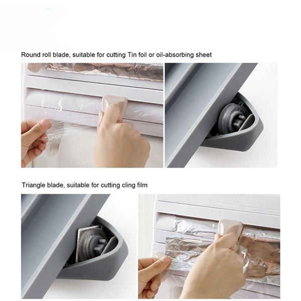 Description:Upgraded kitchen pasting film holder, fresh packaging, foil roll, garbage bag and tape, built-in triangle knife and circular rolling cutter cutting, is a good home helper.It can be used with any kitchen decoration. The plastic bag is removable and can be moved around the kitchen.Wall-mounted kitchen storage rack is convenient for storage and space saving, safe and practical.Wall-mounted reel bracket is convenient for storing plastic packaging, aluminum foil and paper towel for easy access: the blade is hidden and cannot be seen. Just hold the plastic gently and the handle can be separated from the wheel hub automatically.Necessary mounting parts, screws and 3M tape.A three-paper dispenser with hanging holes can be hung on nails on the wall.You can choose the installation method flexibly.This item can also be printed with the logo you want, you can consult us for details.