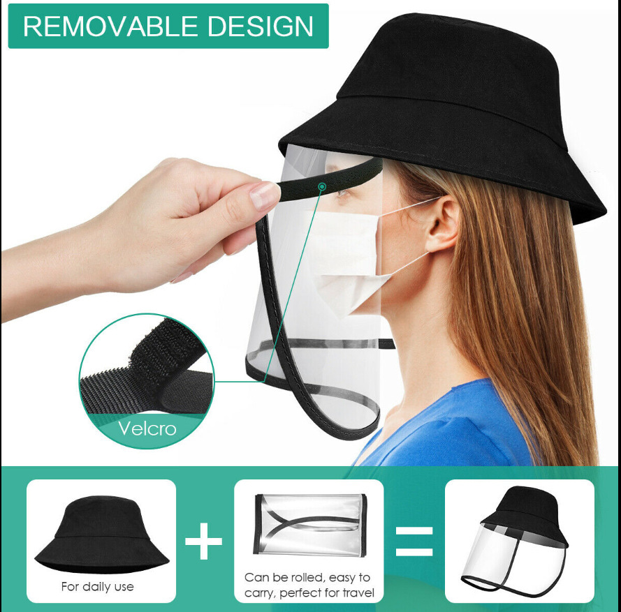 Description:This cap is made of cotton and is comfortable to wear.270° separation of droplets, triple strict protection.The mask is made of TPU material, upgraded protection, lengthened and broadened. It can be recycled and disinfected with alcohol. The three-dimensional design ensures no deformation and no fog.At the same time with a removable Velcro mask can be directly removed when not in use.Environment-friendly fabric, convenient storage.There are many colors for you to choose, you can also print the logo you want, you can consult us for details.