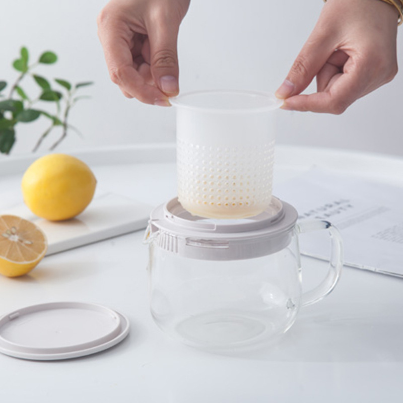 Description:PP material without peculiar smell, hole distribution is uniform and effective separation of tea residue, high temperature and corrosion resistance, high density silicon glass, can withstand 150° temperature difference sudden change.The specific step is to pour tea: put an appropriate amount of tea into the filter.Water injection: change water counterclockwise along the edge of the strainer.Sipping: Wait for a moment, then pour into a small teacup and sip.This section can also print the logo you want, you can consult us for details.