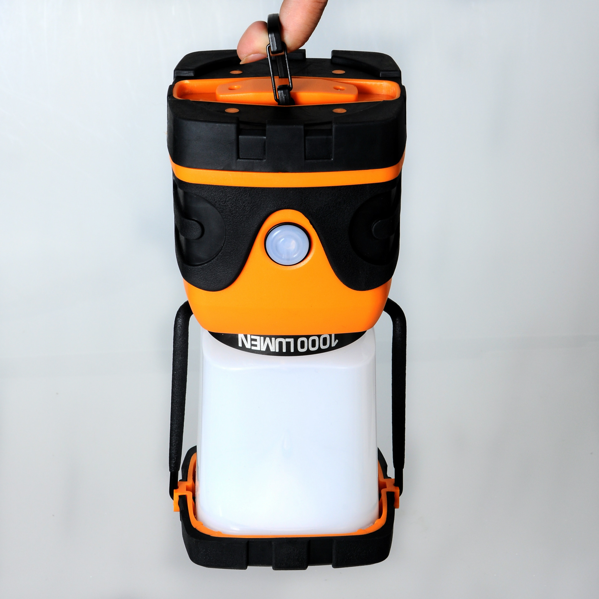 Description:This portable camping lantern comes with two hooks, one on the top and the other at the base that can hang the tent light upside down to get better light when lighting up a big area. Using 1.5V 3 x D batteries (NOT included) as power supply, enables it can be used up to 12-25 hours.Waterproof level is IPX4 protection grade, Brightness is 1000 lumens. Simply Short Press the switch of the tent light to adjust from 700lm (cool white), 300lm (warm white), 1000lm (cool white) to 1000lm (flash mode), While long press it can adjust the brightness to meet your need. It quite suitable for camping, snowstorm, hiking,fishing, walking the dog, hurricans,emergency usage or other outdoor activities. Your logo is welcome.