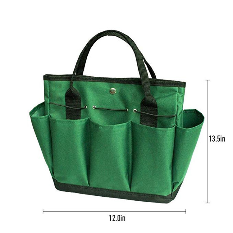 Description:This tool storage bag is made of Oxford cloth and can bear up to 15KG. It is portable and easy to extract.A button button on the top prevents items from leaking out.The outer layer has five compartments for placing gadgets.The size of this style is 12 *13.5, the color is green, you can also print the logo you want, you can consult us for details.