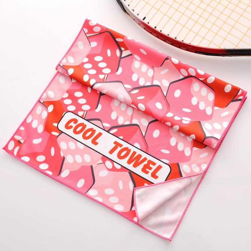 Description:This cooling towel adopts light and thin material, breathable and comfortable.Effective with water, cooling quickly.Just use water, physical cooling, no chemical add green health.The surface layer regulates evaporation and carries away surface heat.The middle layer allows the water molecules to circulate efficiently.The dark layer quickly absorbs sweat from the surface of the body.Adopt cold sensing technology yarn weaving, UV blocking rate protection index 50+, machine washable, no effect on cold sensing effect.Free of polymers, synthetic resins and preservatives.Water and sweat at room temperature can produce a cooling effect.As long as the fabric contains moisture, the cooling effect can be stimulated by swinging.The fabric is soft and light, easy to carry.
