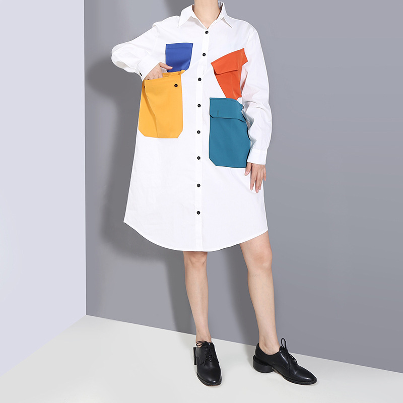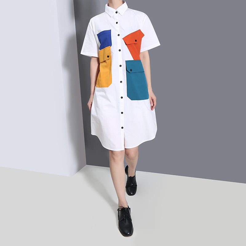 Description:This dress is mainly made of cotton and polyester, the material is soft and breathable and comfortable.The collar of the dress adopts the classic POLO collar, which is fashionable and generous, yet sexy and elegant.Multi-pocket splicing, add fashion highlights for the version.Flounces design, the atmosphere of the trendy way to show, release women’s simple leisure quality of life and moving charm.