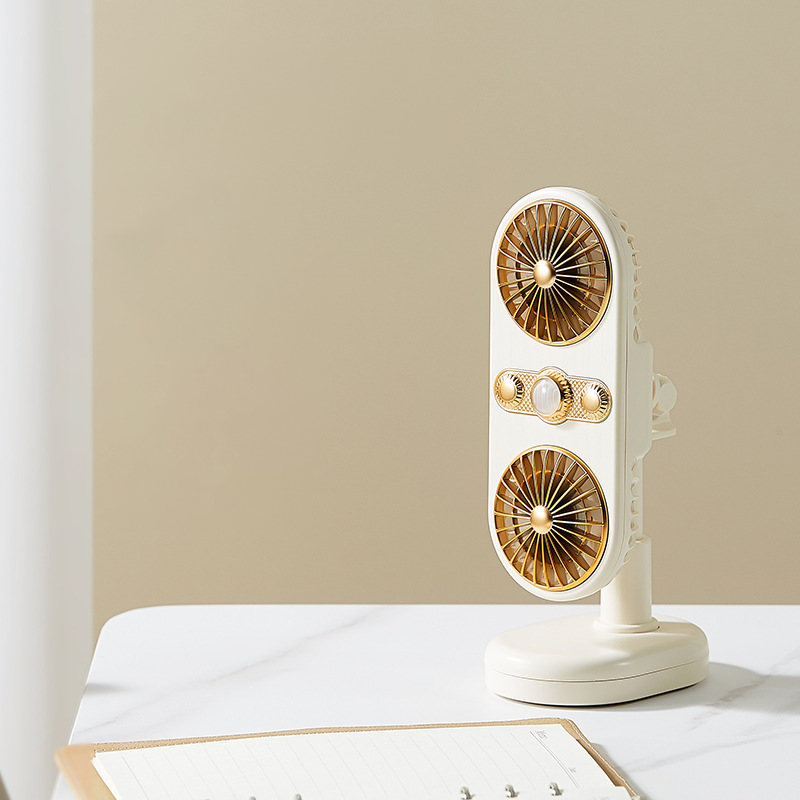 Description:Dual-headed fan: the fan through the innovative fan blade design, with the external network design balanced output of strong wind, can send a soft breeze comparable to the natural wind, long comfortable blowing, no headache, no interference.Platform/clip free installation: in a variety of scenes can bring you a more comfortable sense of cool wind.Brushless motor: continuous and stable power output.Multi-angle air supply, light and portable.Multicolor optional, you can also print the logo you want, the specific details can consult us.