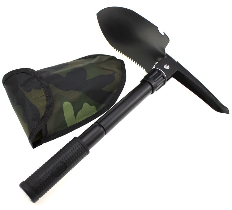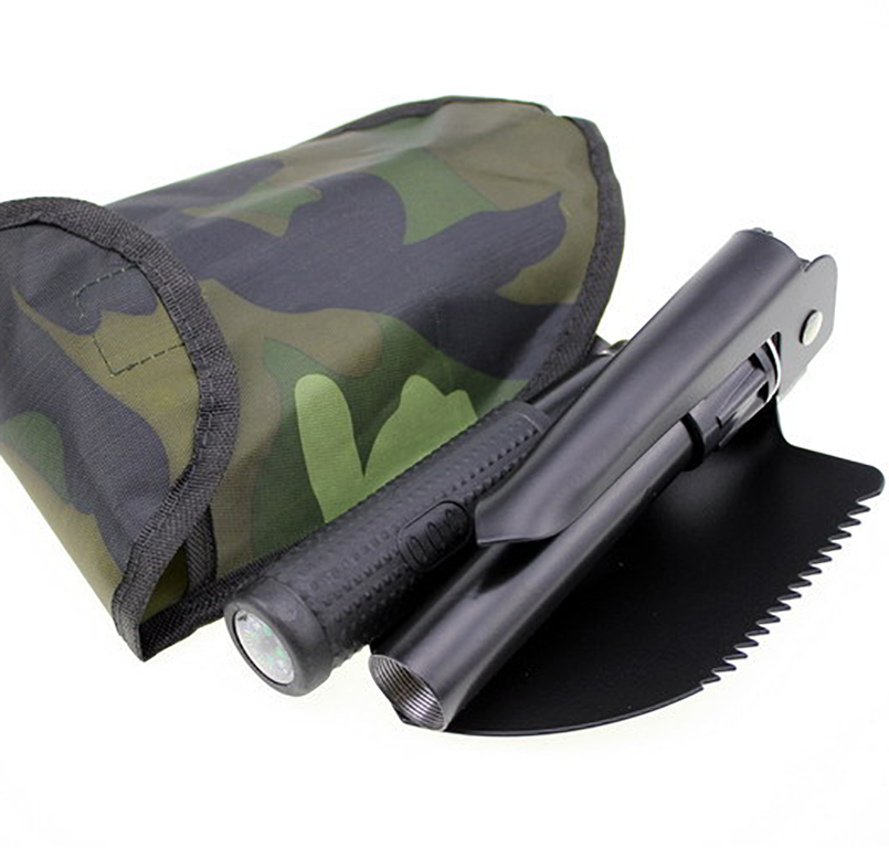 Description:This shovel is small and easy to carry. One end is a shovel and the other is a pick. Flexible, foldable, handle can be horizontal or vertical. Versatile, very suitable for camping, tent, mountaineering, adventure, tourism, home garden, scientific research and other outdoor activities of a good helper, with spade, pick, saw, bottle opener, compass and other functions. Reasonable design, small closing volume and easy to carry, bayonet design. With portable camouflage coat, can hang on the waist. Two color optional, you can also print the logo you want, details can consult us.