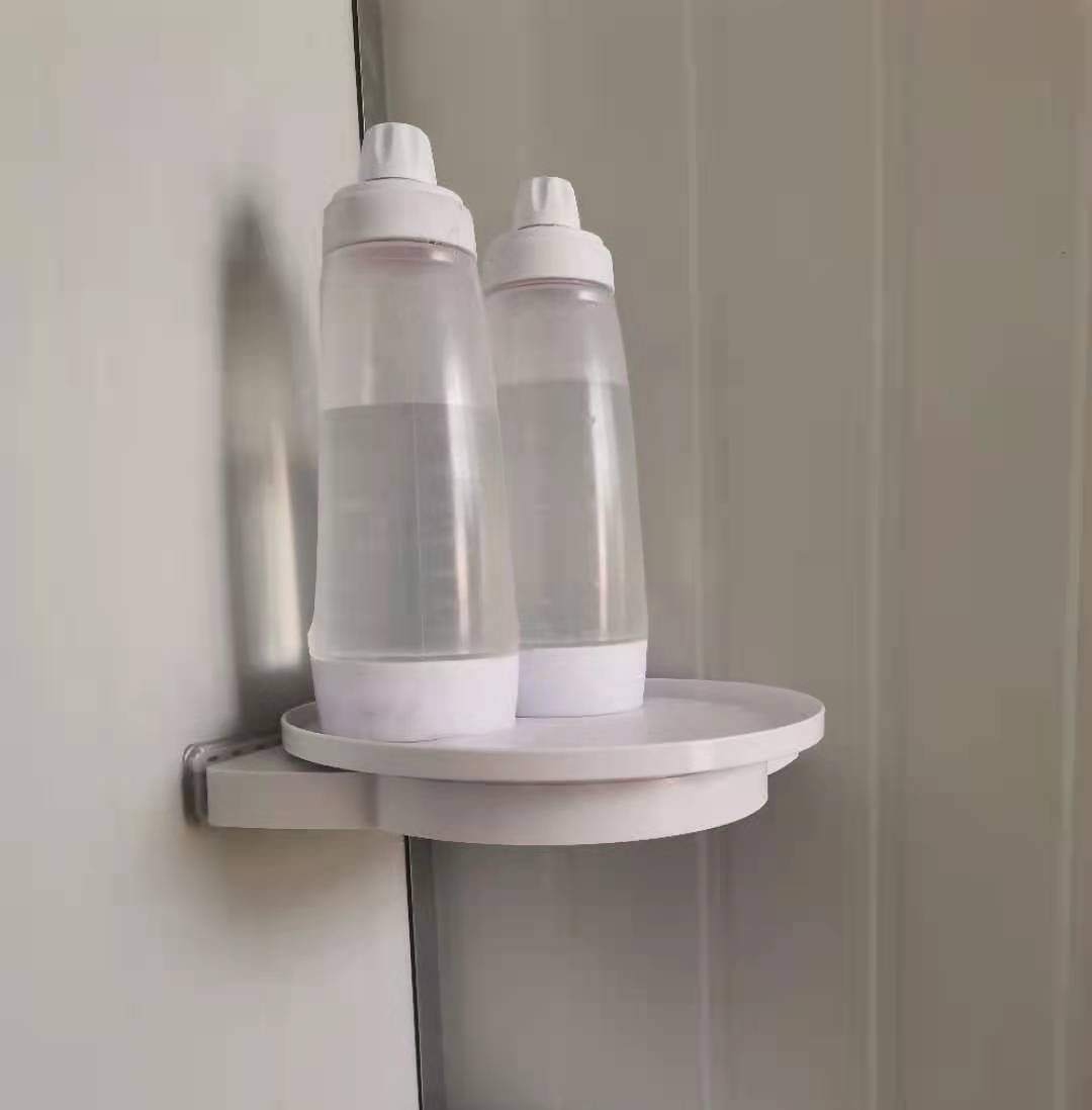 Description:This shelf triangle design, the upper plate area can be placed bathroom supplies or kitchen items. The plate can be rotated to make it easier to handle. There are hooks around the footwall, which can be hung and placed. It can be placed or suspended. One thing multi-purpose, can be placed in the bathroom already, still can use at the kitchen. This section can also be printed with the logo you want, specific details can consult us.