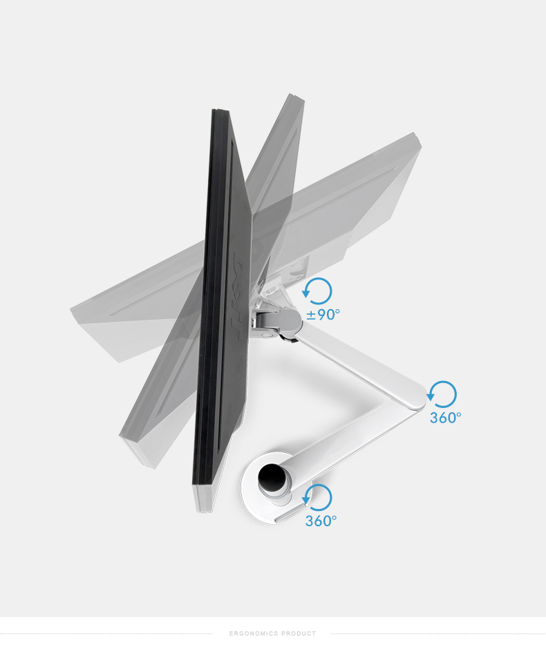 Description:Flexible adjustment: the bracket arm can be extended freely, the desktop is simple and clean. Adjustable height: limit buckle height adjustment, free rise and fall. Pitch Angle adjustment: +90°/-55°. 360° rotation: landscape and portrait screen can be switched freely. Monitor elevation damping adjustment: humanized damping adjustment system, clockwise adjustment to increase the damping, counterclockwise adjustment to reduce the damping. Clamping base: equipped with handle adjustment knob, can clamp the thickness of the desktop less than 65mm.