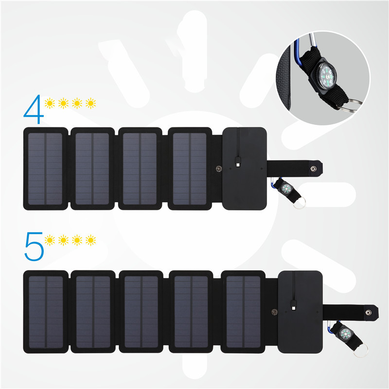 Description:Direct charge solar power: Efficient solar panels that charge electronic devices directly. It can be matched with mobile power supply to store electric energy at all times. High quality solar panel: efficient electric energy conversion, so that there is electricity with light. With a compass buckle, outdoor more portable. No built-in battery: Power the electronic devices directly through the Micro or USB output interface. Humanized soft elastic buckle anti – fall design, better protection of your electronic products. Roll folding: fold in the same direction roll, smooth appearance, more convenient to carry.