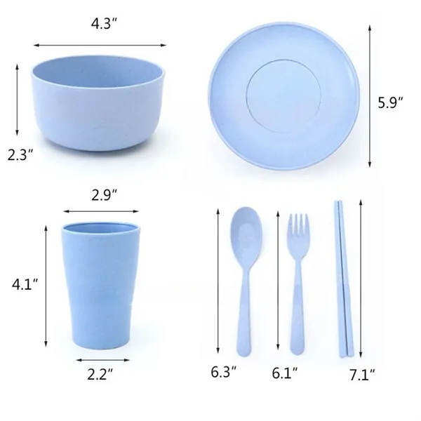 Description:This eco-friendly dinnerware set will transform mealtimes for the better! This set is made of natural organic wheat straw fiber material and can be used to enjoy things like pasta, sandwiches, bread, butter, desserts, soup, rice, salad, appetizers, and so much more. Included are a bowl, plate, cup, knife, fork, and spoon. Unlike other products on the market, this item is a sustainable alternative to foam or plastic options. After use, clean it with soap and hot water. Elevate your dining experience and order now.